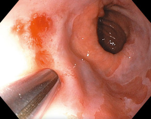 Cryotherapy is typically well tolerated, with low rate of serious AEs (0–3%). The most common complication is post-treatment strictures, reported in 0–12.5%. Bleeding and perforation are rare (≤1%) (27-31). A recent multicenter prospective study on cryoballoon ablation reported self-limited bleeding in 1 patient on clopidogrel (0.8%). No perforation occurred as a direct result of cryoballoon ablation (31).