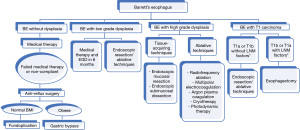 - Singh T, Sanghi V, Thota PN. Current management of Barrett esophagus and esophageal adenocarcinoma. Cleve Clin J Med 2019;86:724-32. [Crossref] [PubMed]